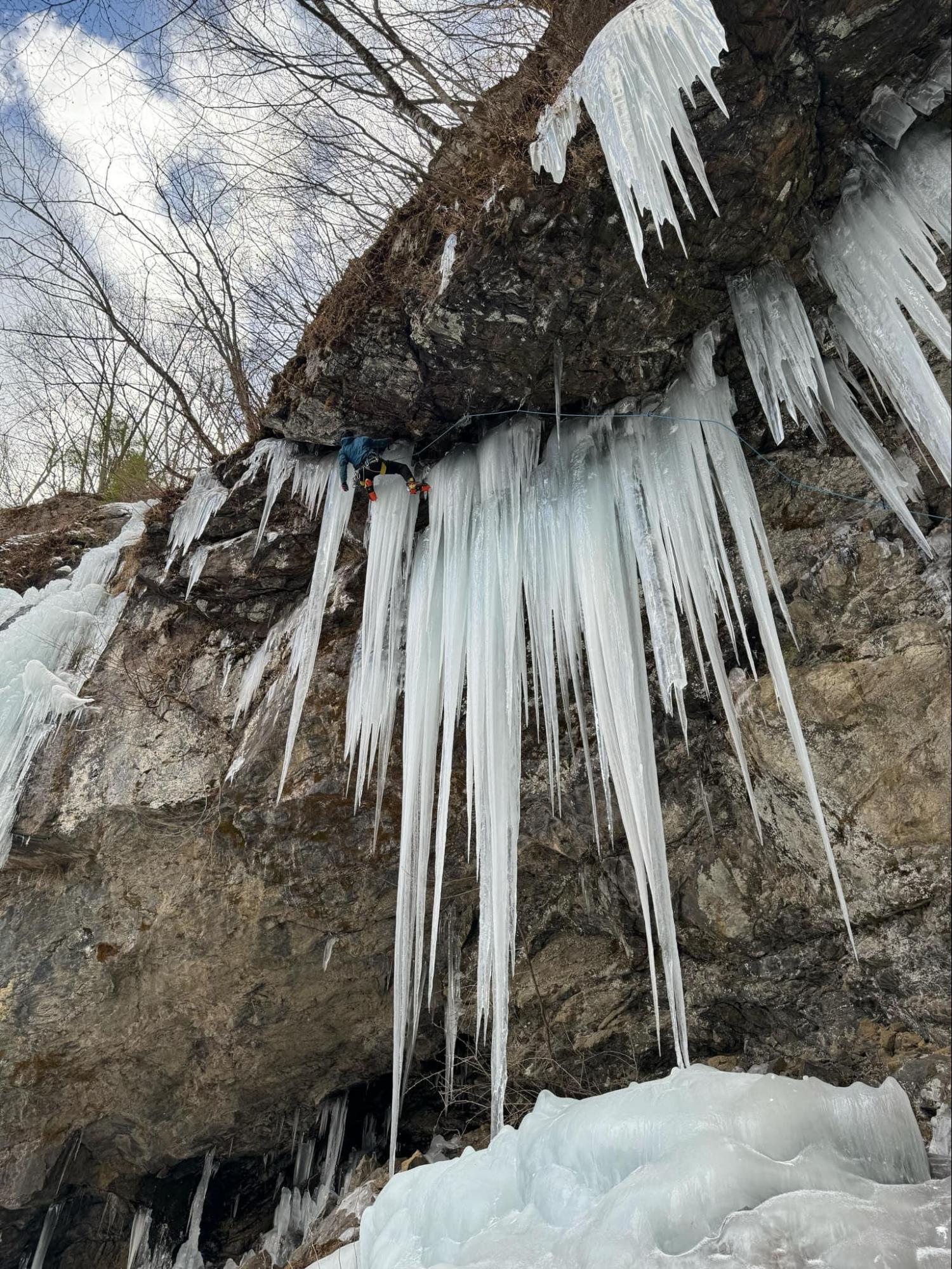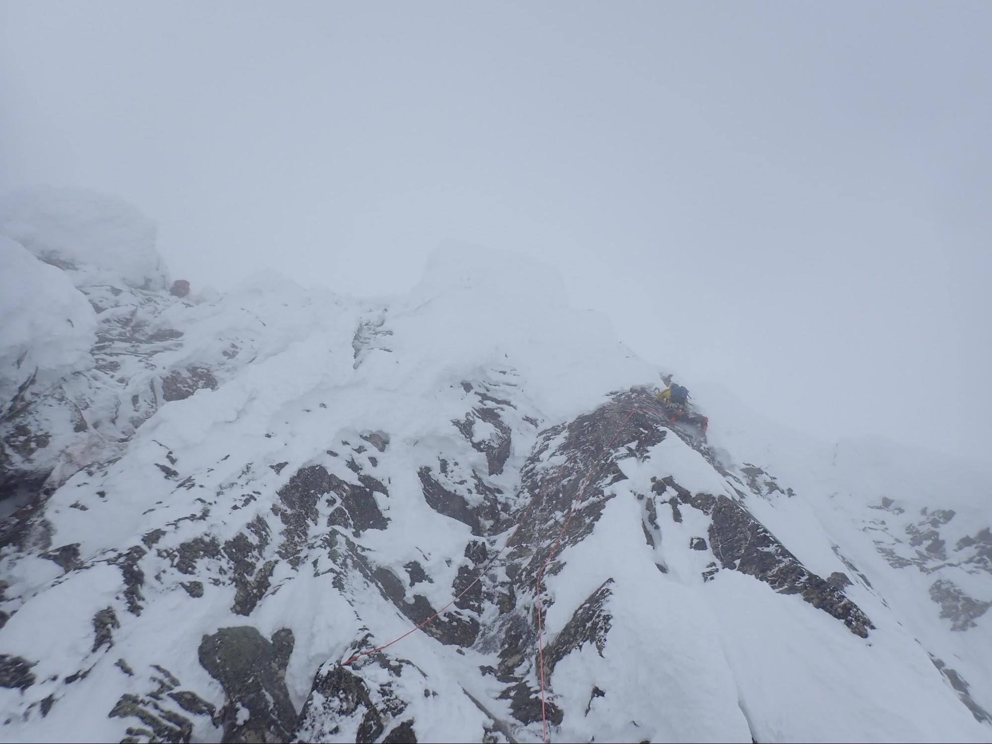 成田: やっぱりアルパインピックがいいんですかね。ミックスピックだと上部の氷でストレスかもしれない。さすがにちょっと気を遣って打ち込むことはできないから。あそこでの消耗が意外とバカにできないですから。