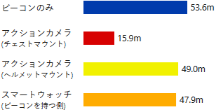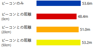 送信側の雪崩ビーコンとスマートフォンの距離を20cm確保すれば、受信距離への影響はほとんどなくなりました。さらに50cm以上離すと、雪崩ビーコンの性能を最大限に活かす事ができます。